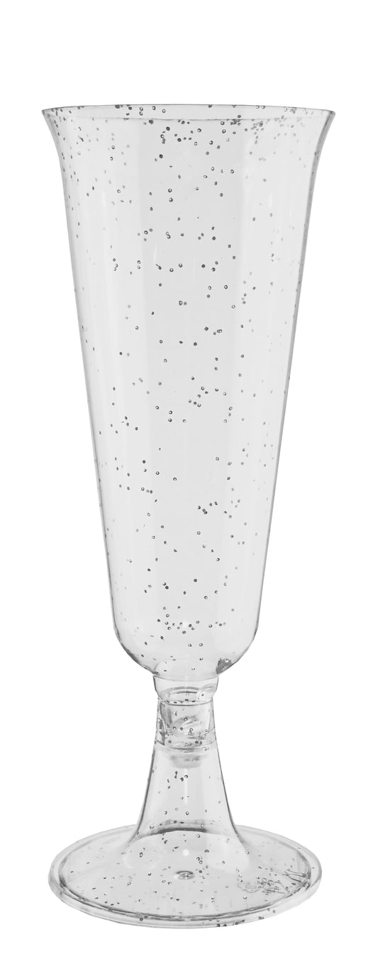 5 Oz. Silver Sparkle Plastic Flute Glasses - 12 Ct.