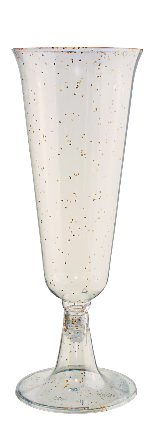 5 Oz. Gold Sparkle Plastic Flute Glasses - 12 Ct.
