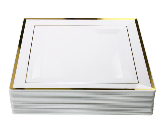 8 In. White/Gold Line Square Plates - 10 Ct.