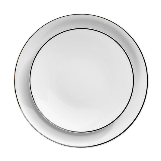 8" Classic White Design Plates - Black Rim 10 Ct.