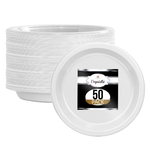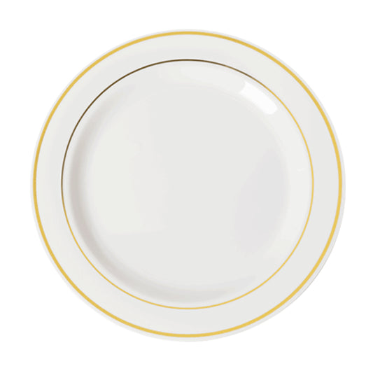 9 In. White/Gold Line Design Plates - 10 Ct.