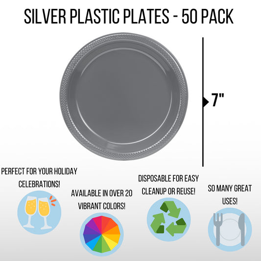 9.5 In. White/Silver Line Square Plates - 10 Ct. (120)