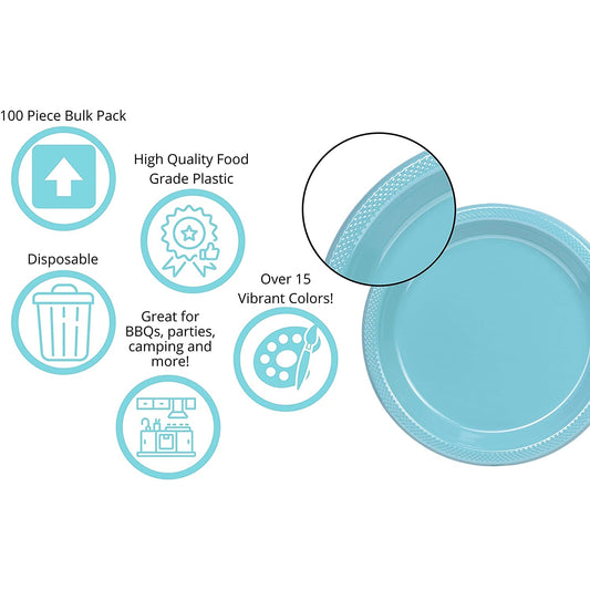 Case of 12 - 10" Plastic Plates 50 ct. - Light Blue