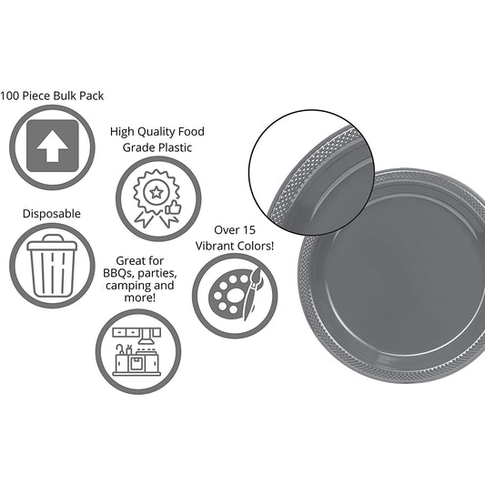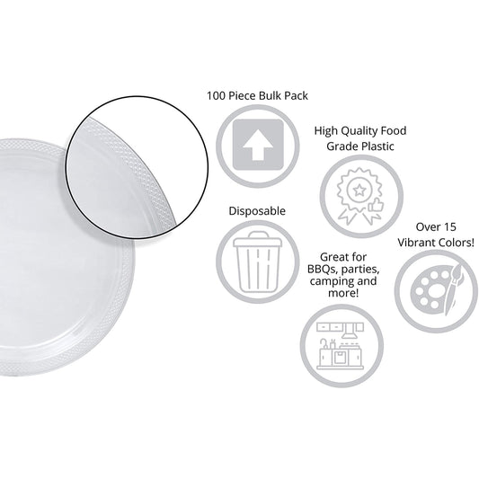 Case of 12 - 10" Plastic Plates 50 ct. - Silver