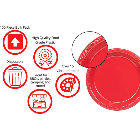 Case of 12 - 10" Plastic Plates 50 ct. - Red
