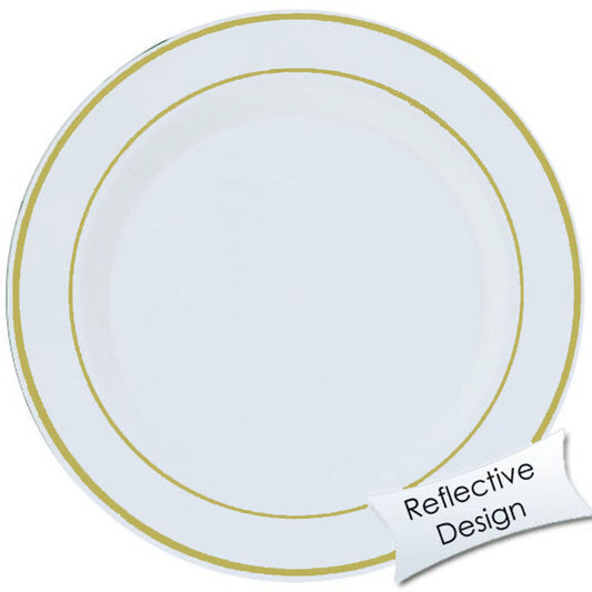 Case of 12 - 10.25" White & Gold Line Premium Plates - 10 ct.