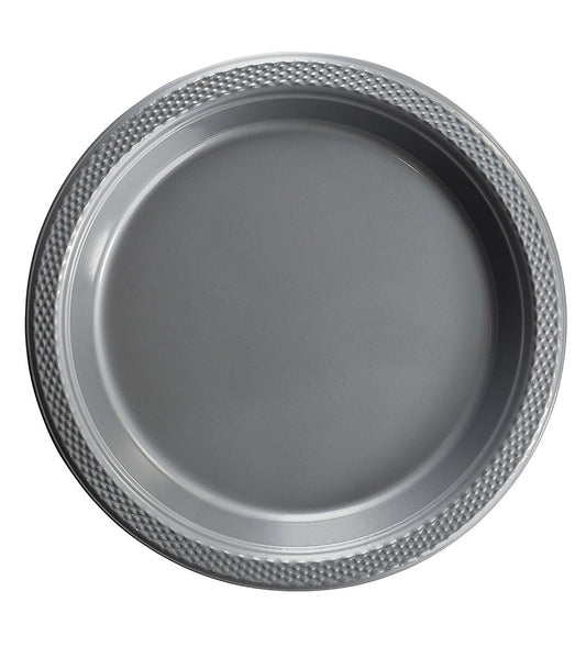 Case of 12 - 7" Plastic Plates 50 ct. - Silver