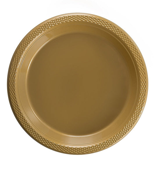 Case of 12 - 7" Plastic Plates 50 ct. - Gold