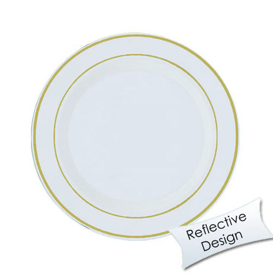 Case of 12 - 7.5" White & Gold Line Premium Plates - 10 ct.