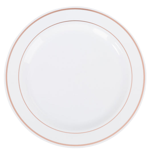Case of 12 - 7.5" White & Rose Gold Line Premium Plates - 10 ct.