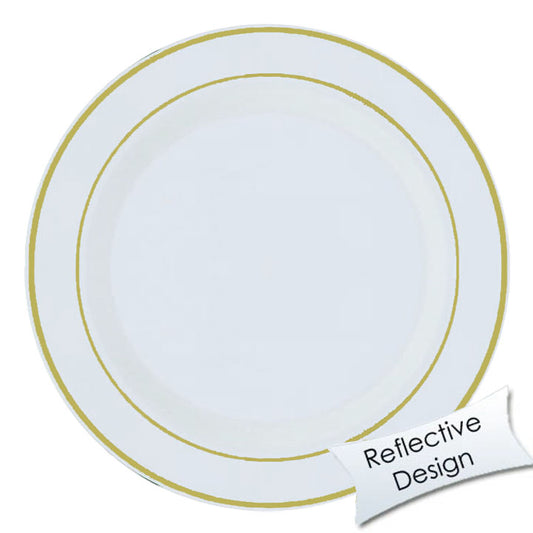 Case of 12 - 9" White & Gold Line Premium Plates - 10 ct.