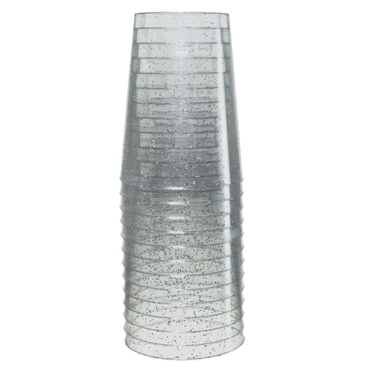 Case of 24 - 10 oz. Silver Sparkle Plastic tumblers - 20 count