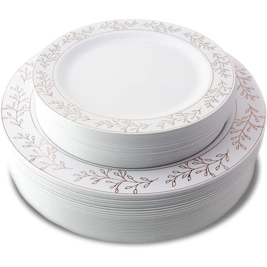 Case Of 4 - Rose Gold Leaf Plates Combo Pack - 30/30