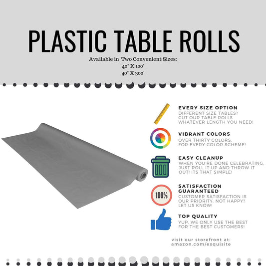 Exquisite Premium Quality Plastic Table Cover Banquet Roll, 40 in X 100 ft - Silver