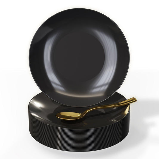 Case Of 12 - 8" Trend Black Plastic Plates (10)