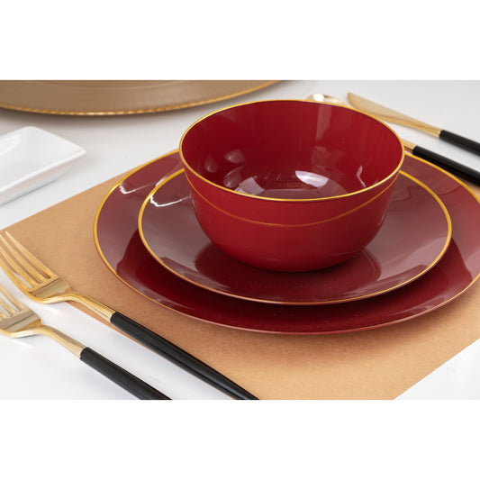 Case of 12 - Classic Burgundy Design Plastic Bowls - 10 Ct.