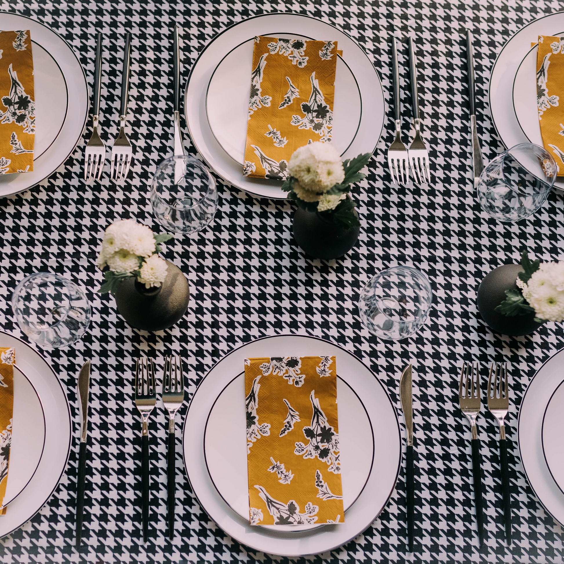 10" Classic White Design Plates - Black Rim 10 Ct.