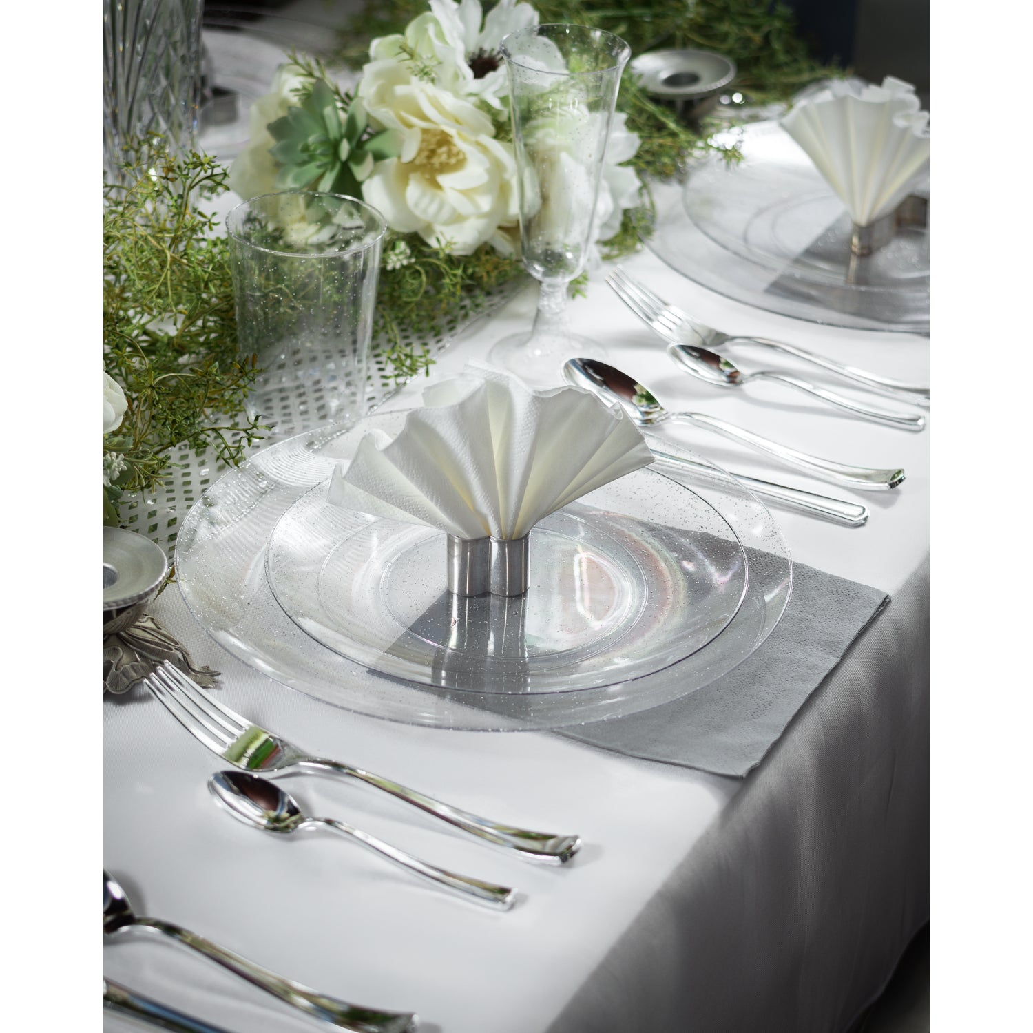 10" Silver Sparkle Design Plastic Plates (10)