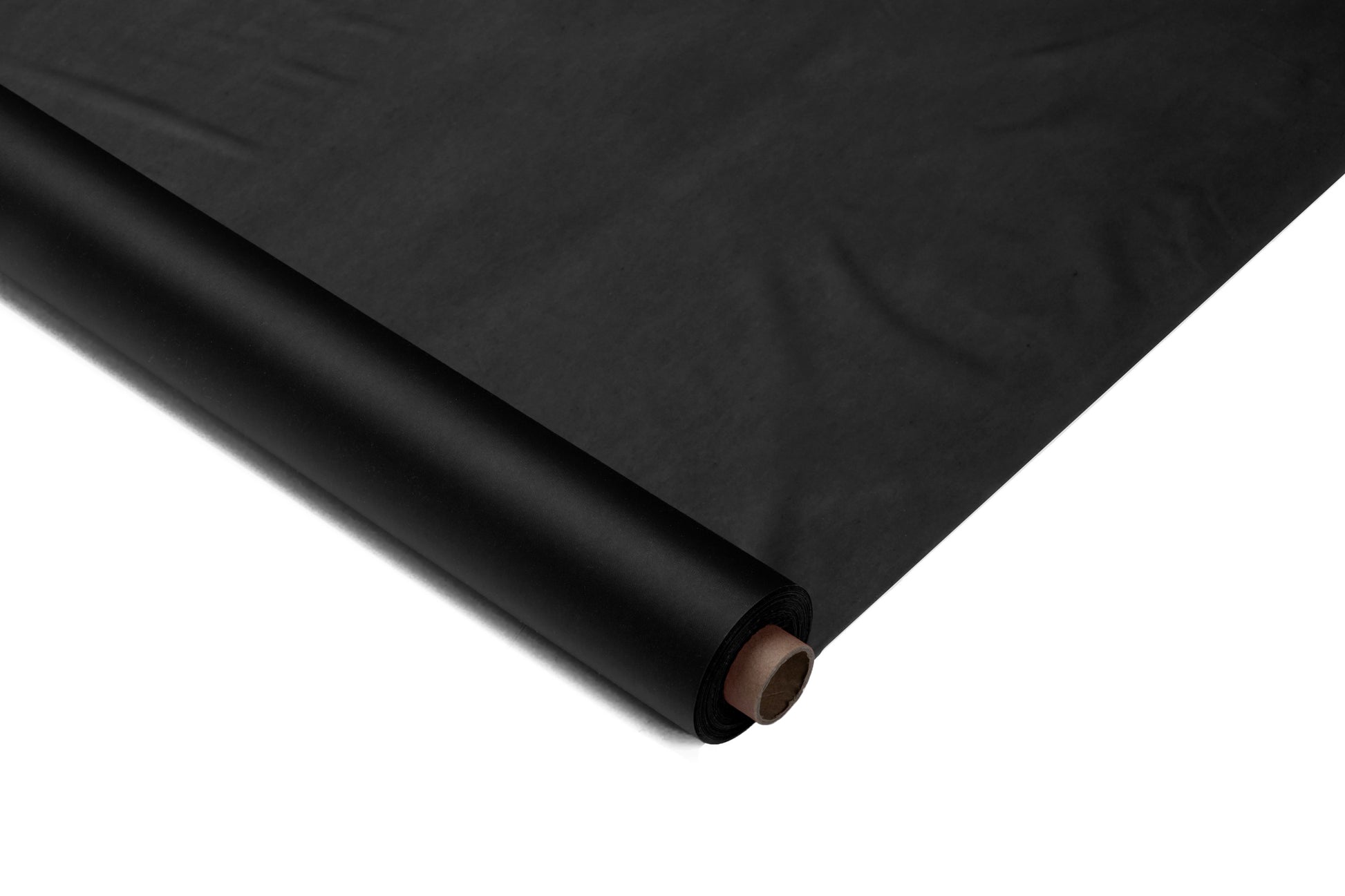 This roll of Black colored plastic table covering measures 40" wide x 100' long. Each roll should be sufficient for covering approximately 12 tables. Our tablecovers have a very high opacity so that they can be used on any table with minimal transparency. Your tables will look elegant with these beautiful colored tablecloths. When the party is over, cleanup is easy - just roll up the table cover and throw the mess away!