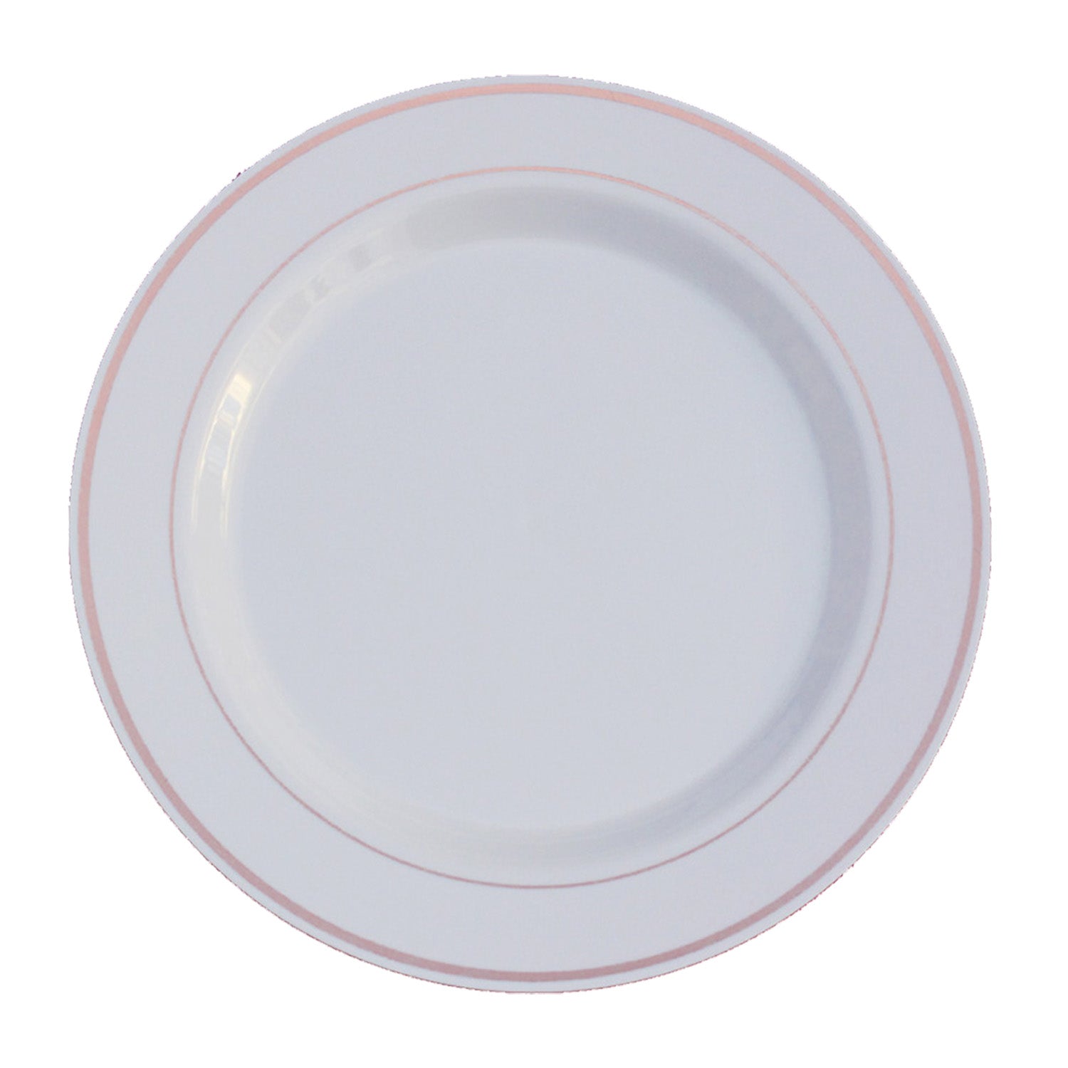 9 In. White/Rose Gold Line Design Plates - 10 Ct.