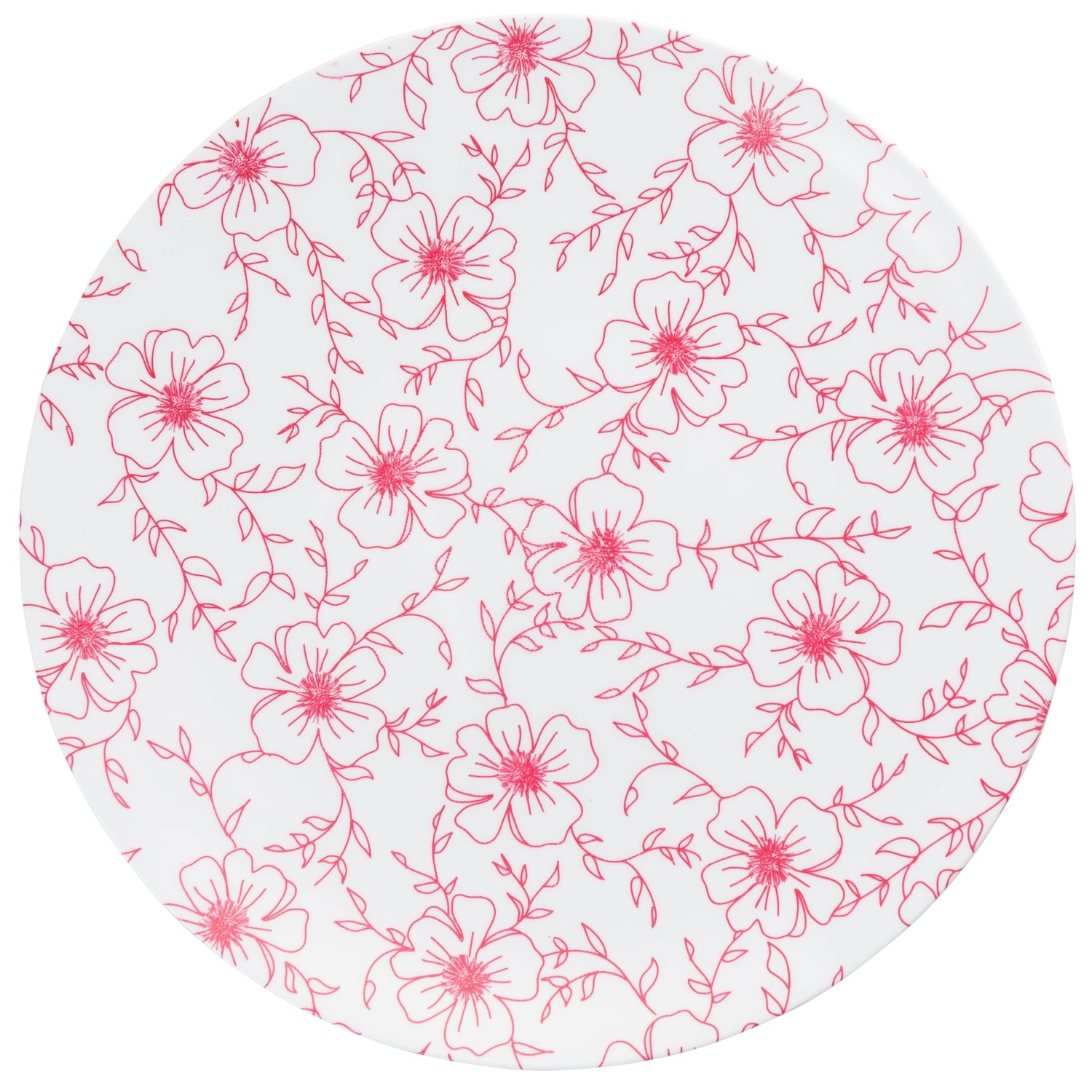 These stunning disposables are part of the Trendables™ collection of fine dinnerware. Each plastic plate measures 8 in. This salad plate is part of the Flora series and features a white base with a burgundy floral overlay. Coordinates with additional Flora series disposables. Each package contains 10 exquisite plates.