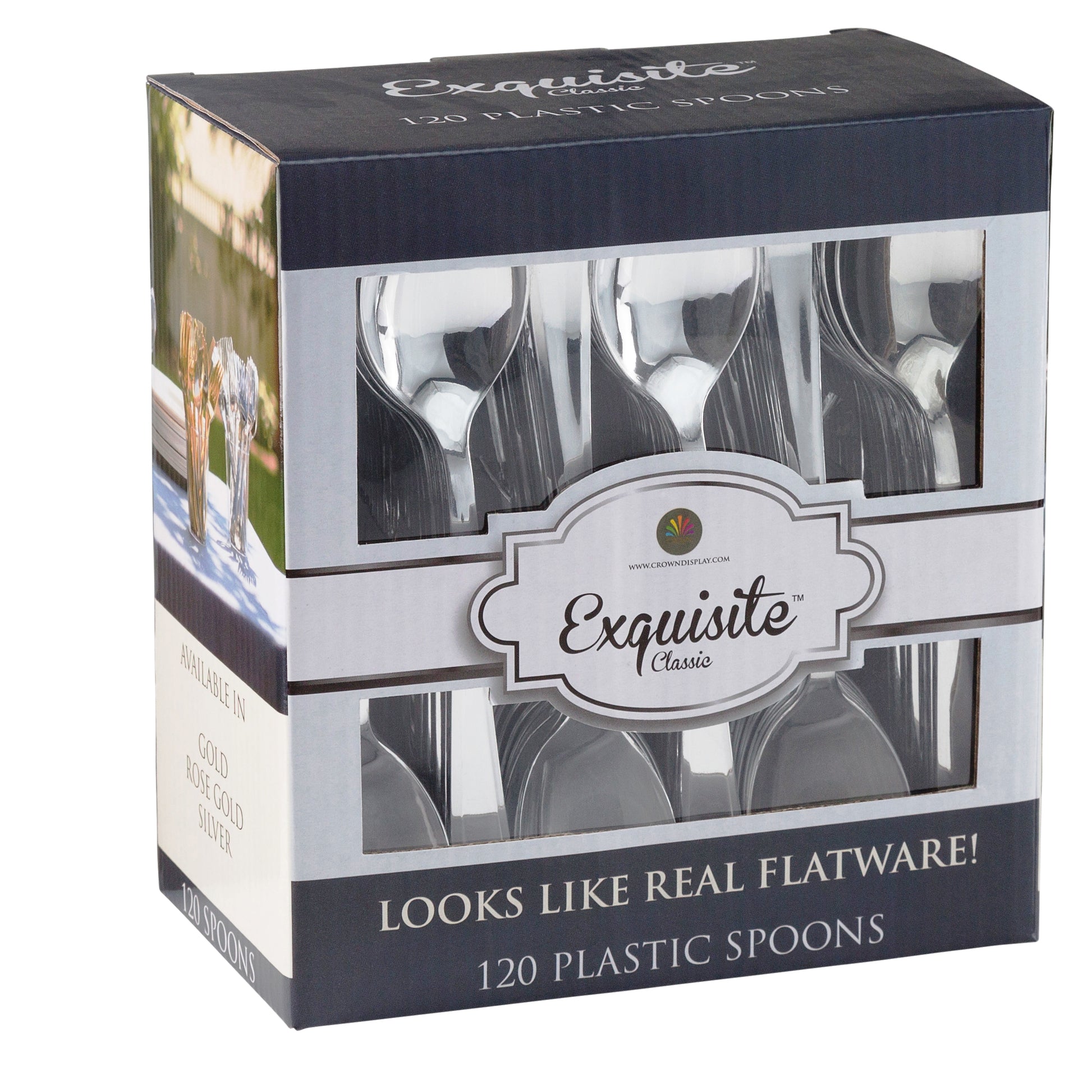 Case of 12 - Exquisite Classic Silver Plastic Spoons - 120 ct.