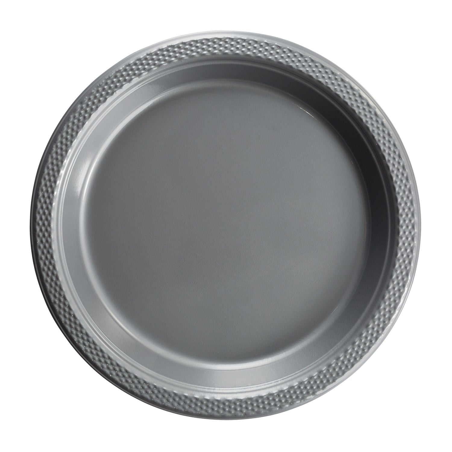 Case of 12 - 9" Plastic Plates 50 ct. - Silver