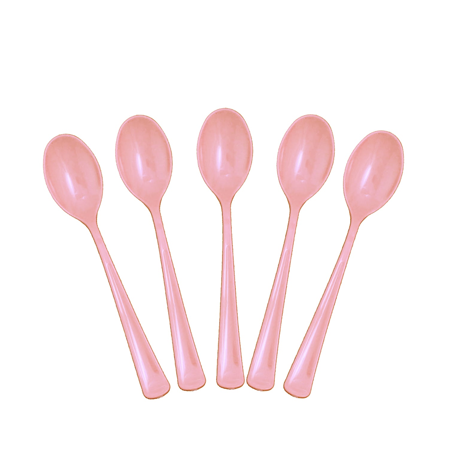 Delight dinner guests at your next event with our selection of heavy weight plastic spoons. Each package contains 50 pink spoons. Plastic flatware is a cost effective and simple way to turn a birthday party, dinner party, or formal affair into a wonderful, stress free event!