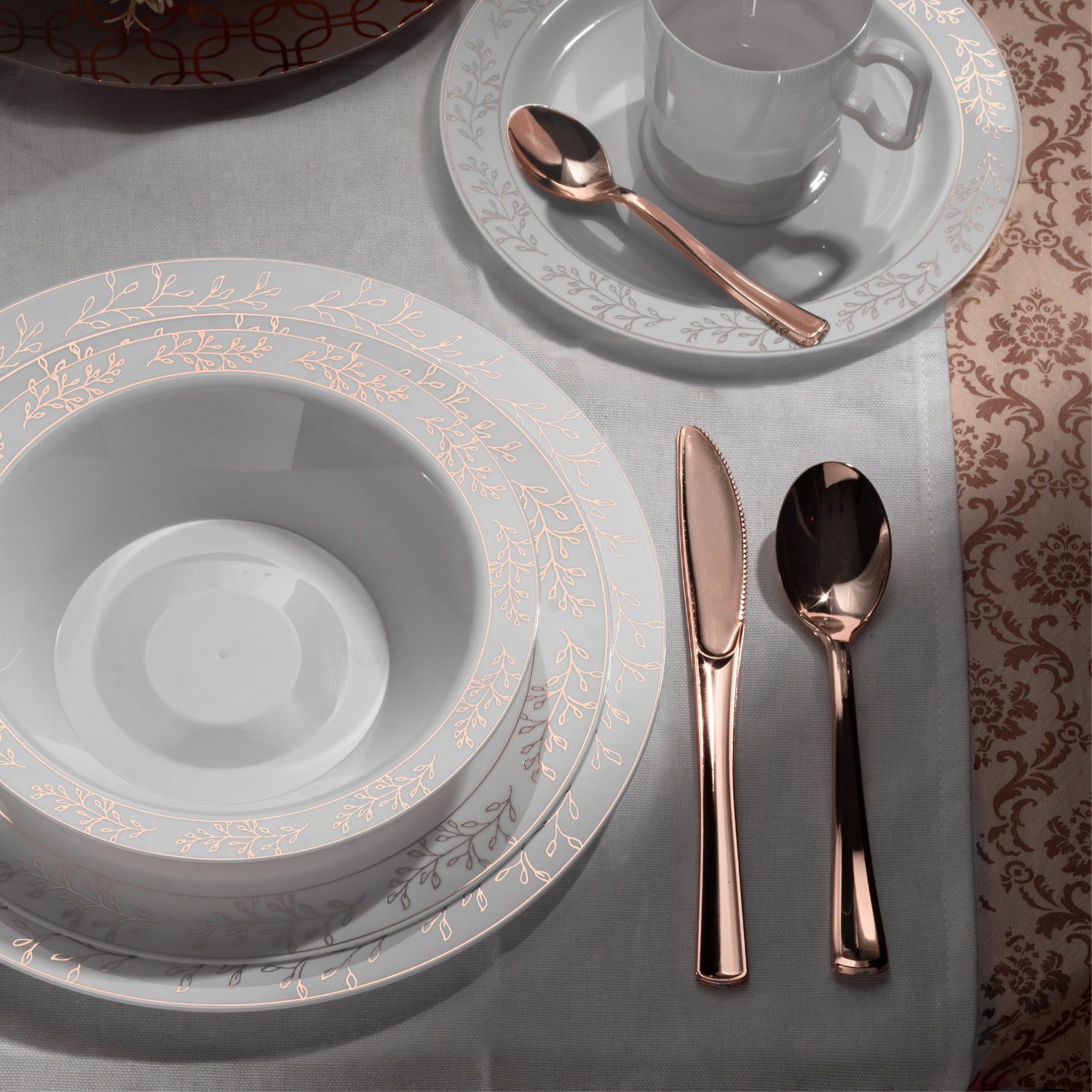 Delight dinner guests at your next event with our metallic Rose Gold plastic tea spoons. Made of high quality plastic, each tea spoon combines the convenience of disposable plastic with the stunning appearance of real cutlery. Exquisite Classic flatware is a cost effective and simple way to turn a wedding, cocktail party, or formal affair into a glamorous event!