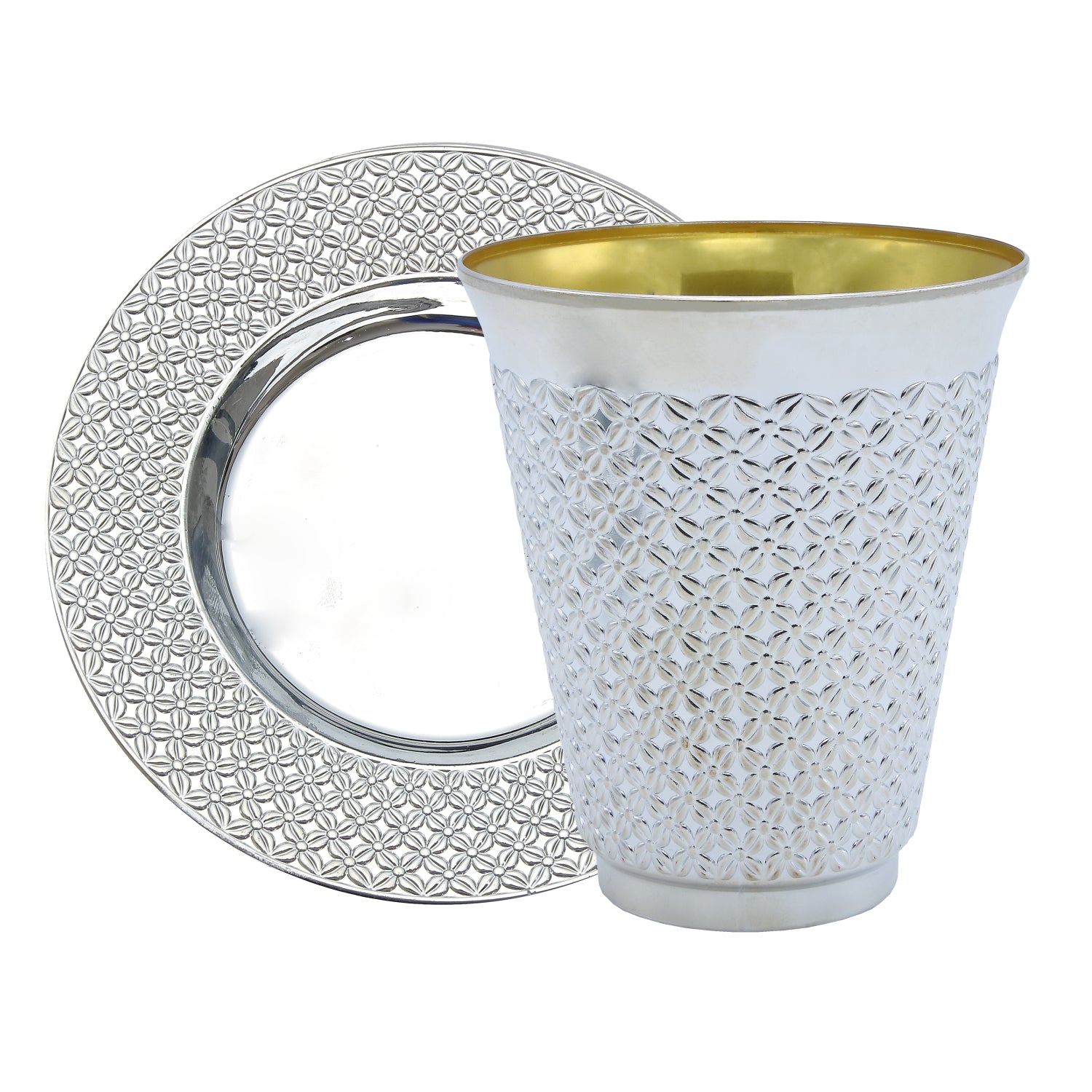 Case of 24 - Silver Kiddush Cup & Plate Set - 5 ct.