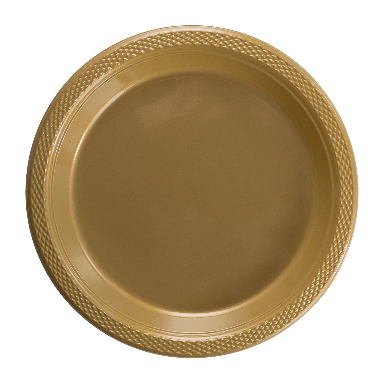 This package contains 8 Gold color 9 inch plastic plates. These premium quality plastic plates feature vibrant coloring and are great for birthday parties, social gatherings and events, and more! Check out our full line of coordinating solid color tableware items.