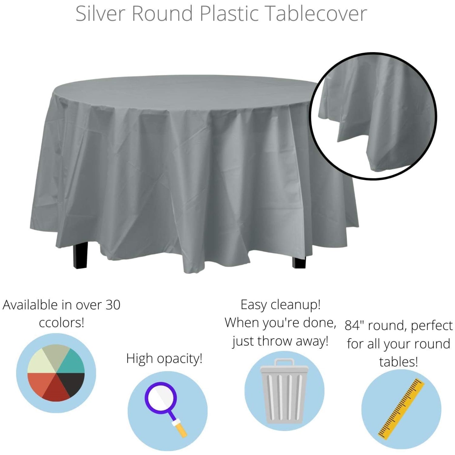 Made from plastic material, our collection of round table covers are certain to meet all of your party needs. Available in a wide variety of colors and thicknesses, our round table covers are the perfect addition to any event - from birthday parties to anniversaries, weddings to banquets.