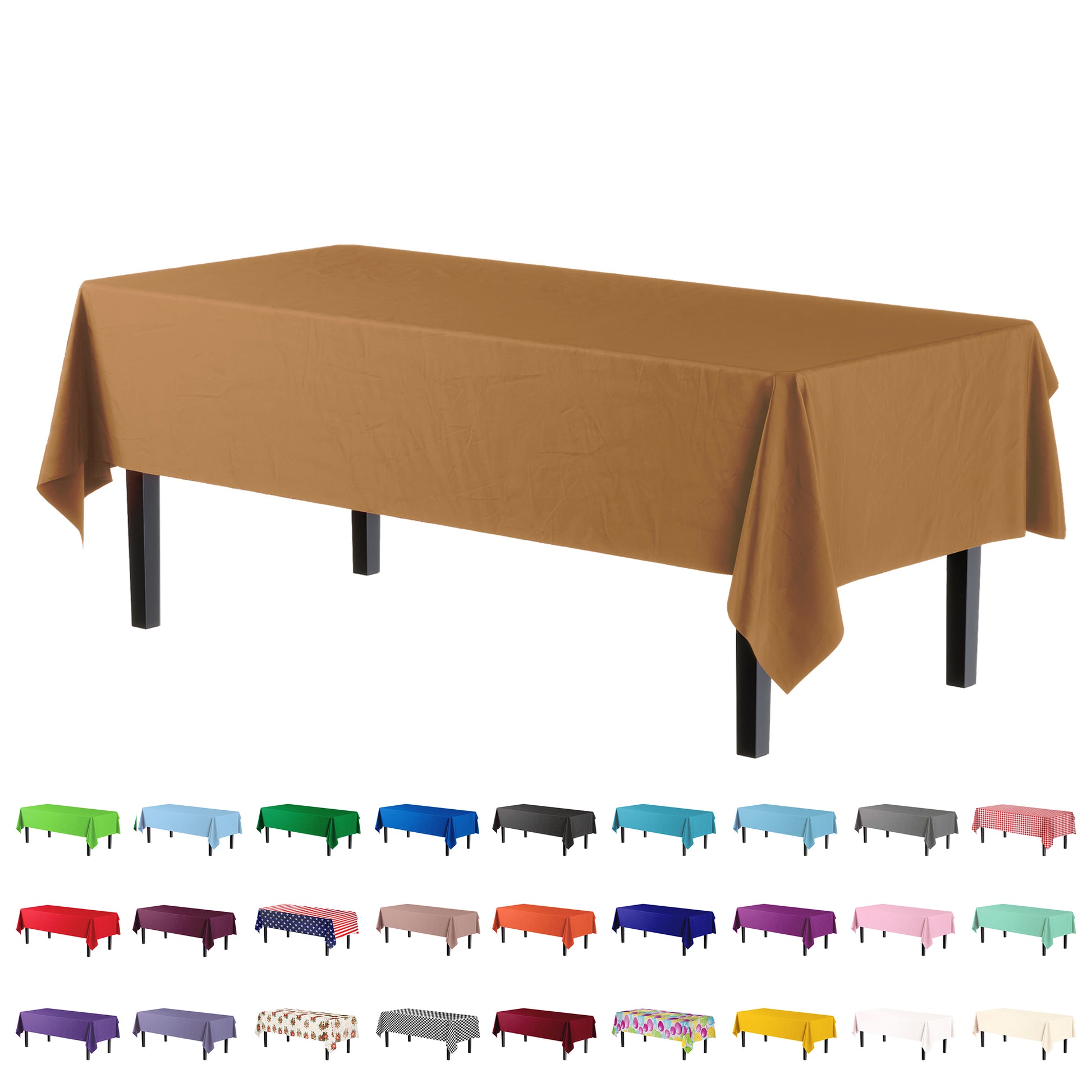 Made from plastic material, our collection of table covers are certain to meet all of your party needs. Available in a wide variety of colors, sizes, and thicknesses, our table covers are the perfect addition to any event - from birthday parties to anniversaries, weddings to banquets.