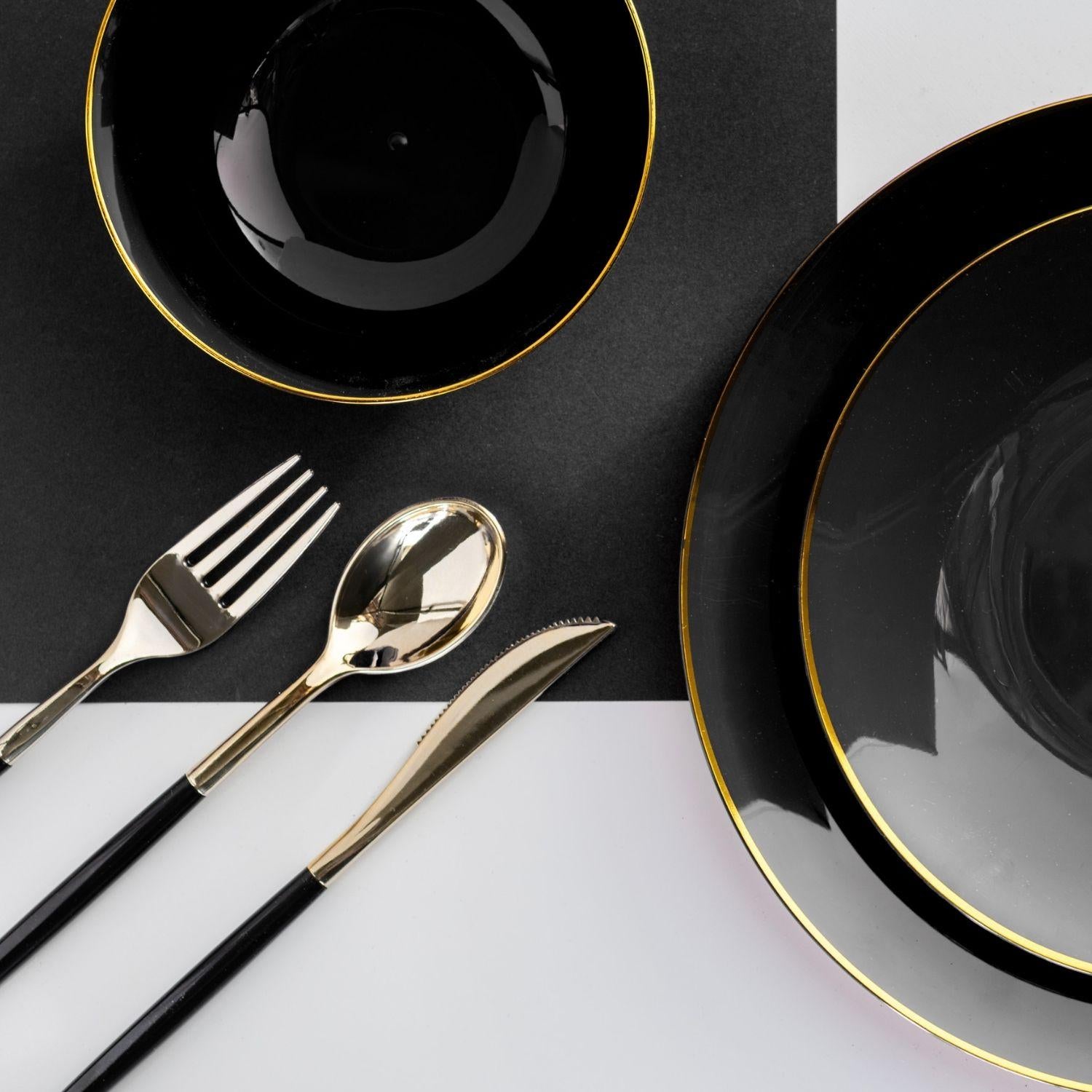 Classic Black Design Plastic Bowls - Gold Rim 10 Ct.