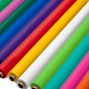 This roll of Orange colored plastic table covering measures 40" wide x 100' long. Each roll should be sufficient for covering approximately 12 tables. Our tablecovers have a very high opacity so that they can be used on any table with minimal transparency. Your tables will look elegant with these beautiful colored tablecloths. When the party is over, cleanup is easy - just roll up the table cover and throw the mess away!