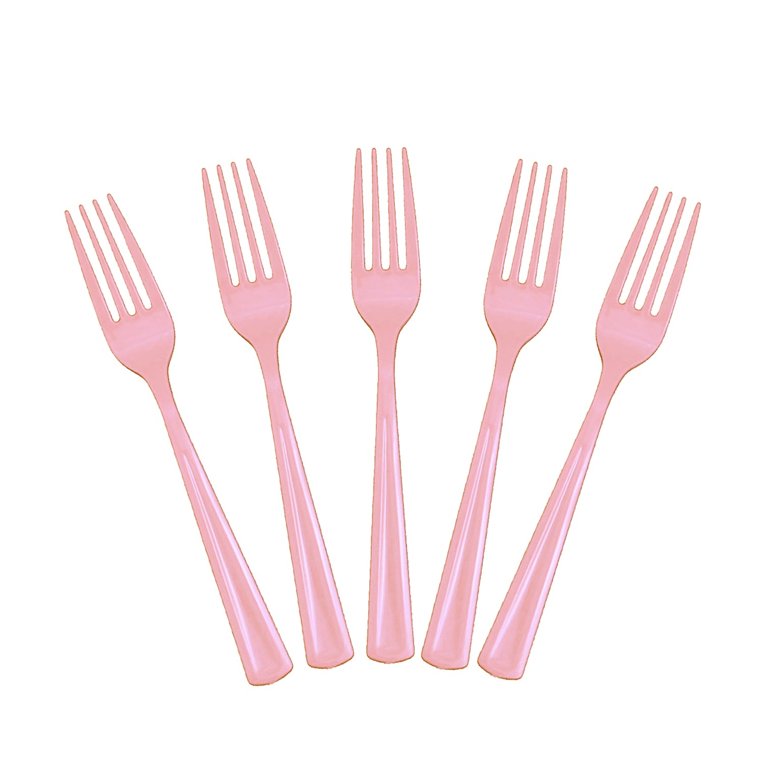 Delight dinner guests at your next event with our selection of heavy weight plastic forks. Each package contains 50 pink forks. Plastic flatware is a cost effective and simple way to turn a birthday party, dinner party, or formal affair into a wonderful, stress free event!