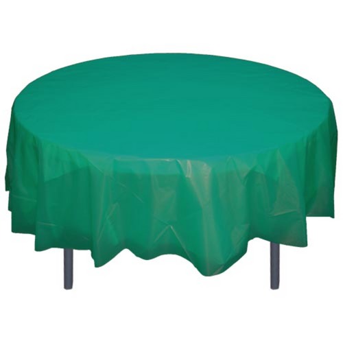 This Teal round tablecloth measures 84" Round. Our plastic teal round table cloths have a very high opacity so that they can be used on any table with minimal transparency. Your tables will look elegant with these beautiful table covers. Disposable works! When the party is over, cleanup is easy - just roll up the table cover and dispose of it.